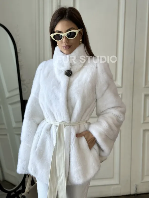 Белая шуба из меха норки (крестовка) стойка воротник доступна для покупки в нашем шоуруме Furs Studio в . У нас так же есть доставка во все города России. Добавьте немного роскоши в свой гардероб с этой шубой, которая будет служить вам многие годы.