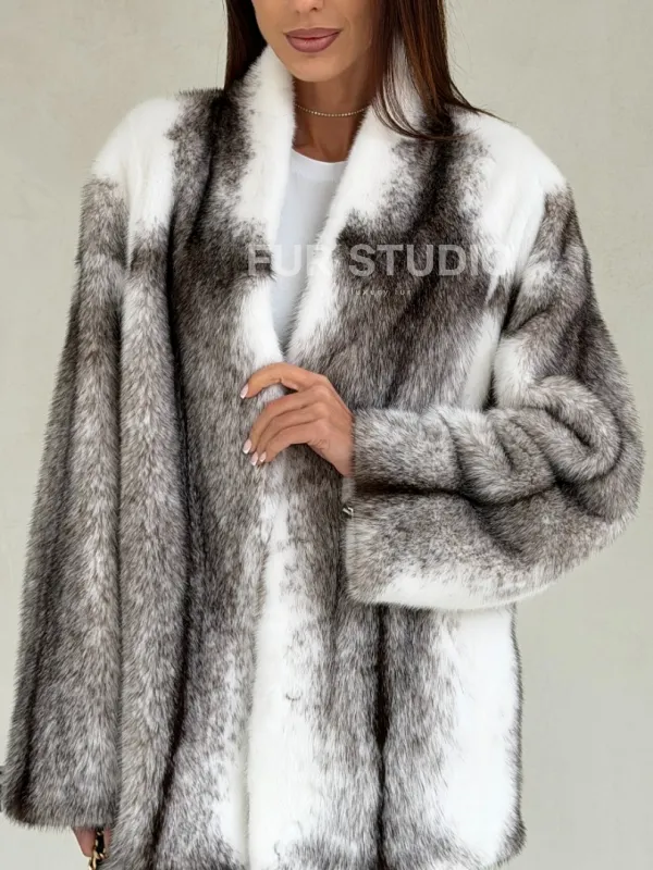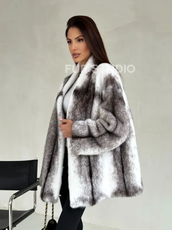 Мех данной шубы аукционная норка , цвет белый. Предлагается в размерах от 42 до 50. Длина модели 70-75 см, что выгодно подчеркивает фигуру девушек. Эта модель идеально подойдет для девушек и женщин, предпочитающих роскошные натуральные меха.
