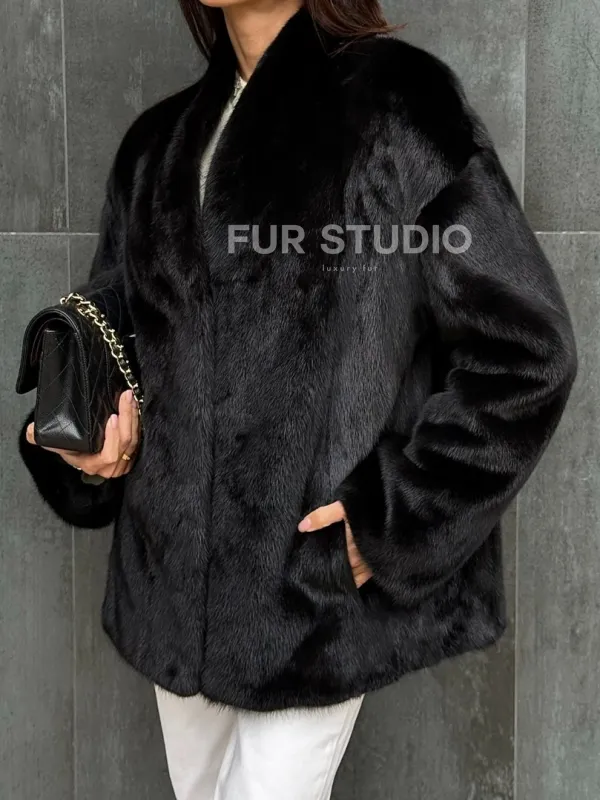 Черный норковый полушубок V-образный воротник доступна для покупки в нашем шоуруме Furs Studio в . У нас так же есть доставка во все города России. Добавьте немного роскоши в свой гардероб с этой шубой, которая будет служить вам многие годы.