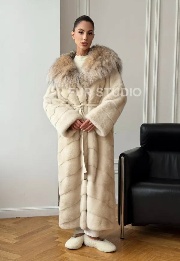 Длинная норковая шуба - капюшон из меха рыси доступна для покупки в нашем шоуруме Furs Studio в . У нас так же есть доставка во все города России. Добавьте немного роскоши в свой гардероб с этой шубой, которая будет служить вам многие годы.