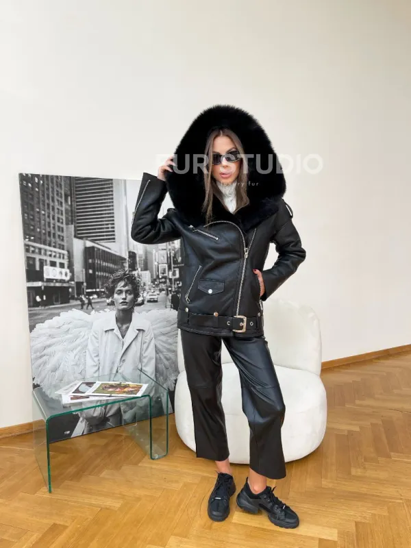 Дубленка авиатор из натуральной овчины с капюшоном – хит этого года. Модель создана для девушек, которые любят быть в тренде. Шикарный капюшон позаботится о прическе и согреет голову в прохладное время года. Прямой крой скроет недостатки фигуры. Удобный фермуар придает образу экстравагантности. Натуральная овчина позаботится о том, чтобы владелица не замерзла даже в самую холодную зиму.
