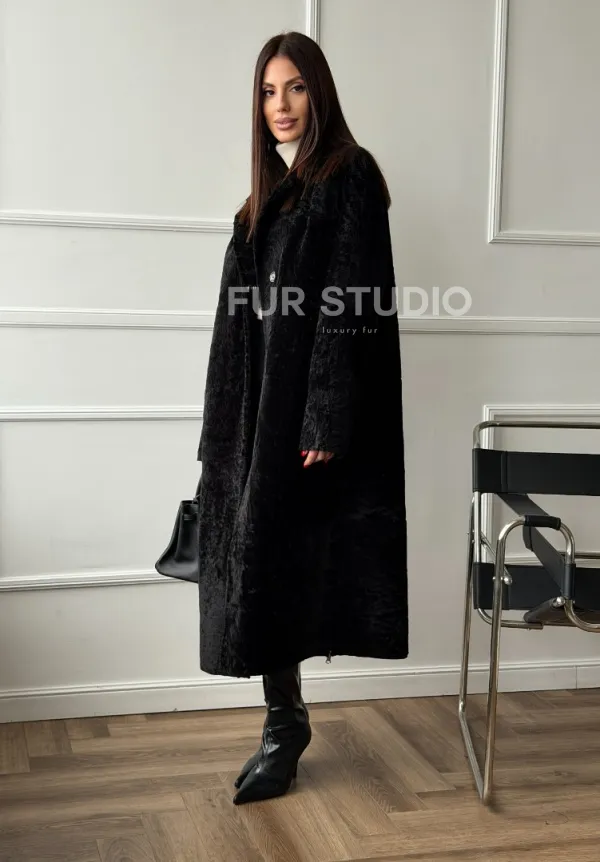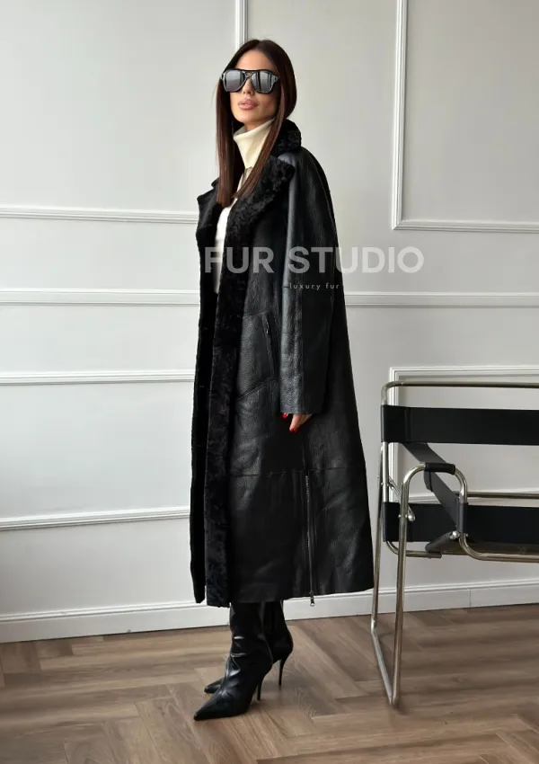 Дубленка из натуральной овчины астраган. Модель предлагается в размерах от 42 до 48. Оптимальная длина моделей 115-120 см подчеркивает линии вашей фигуры. Эта дубленка станет неотъемлемой частью гардероба для тех, кто предпочитает роскошь и утонченность натуральной кожи.