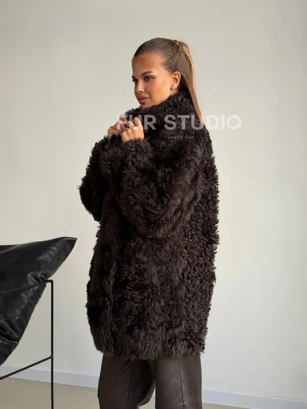Дублёнка коричневая из овчины - тиградо 102603