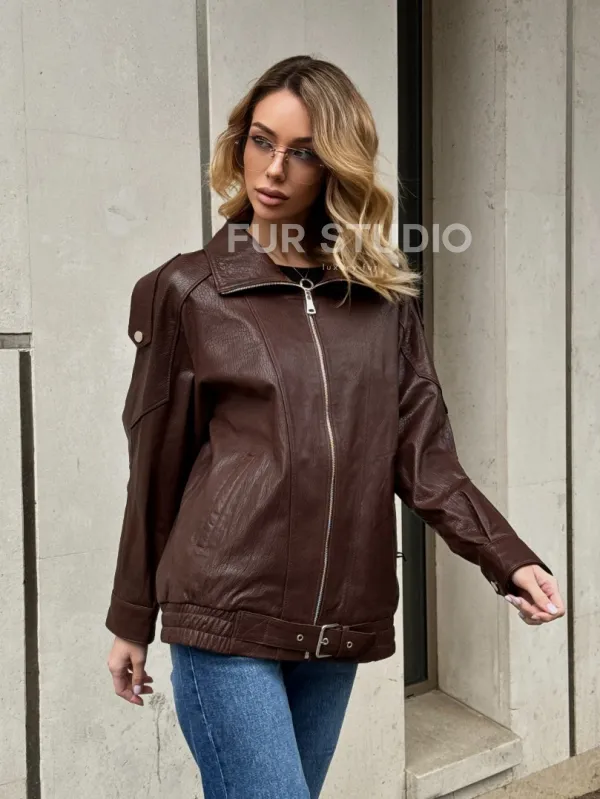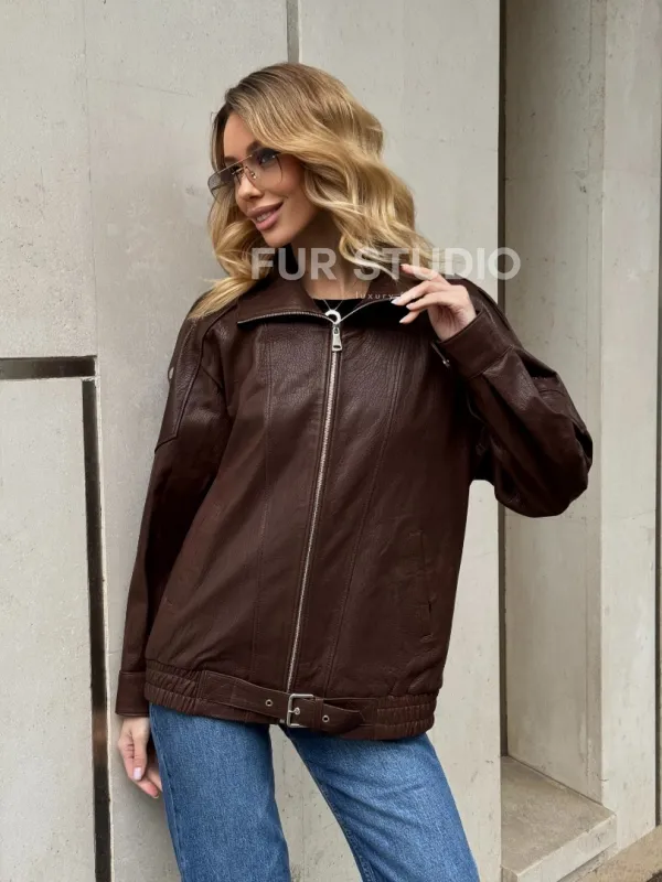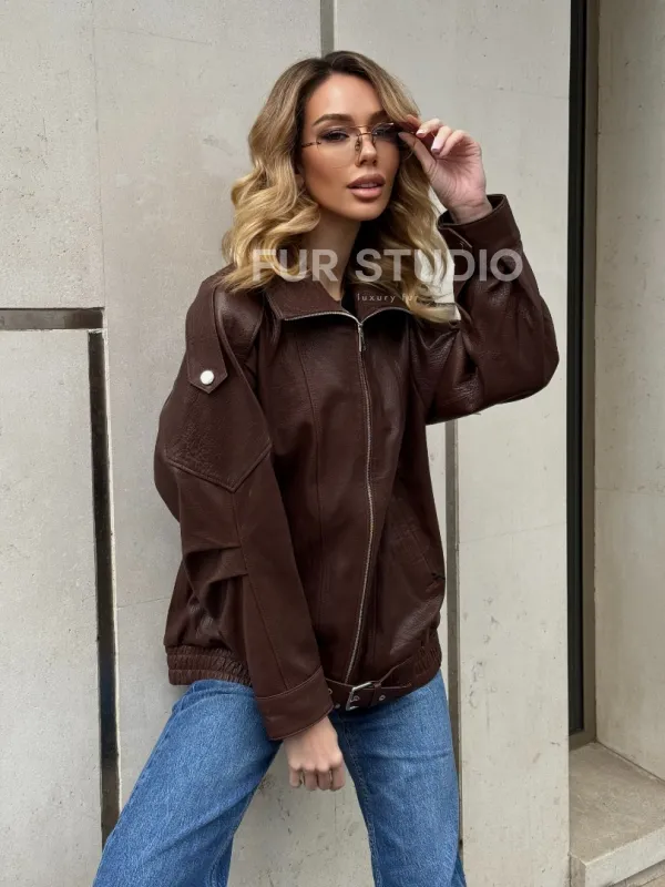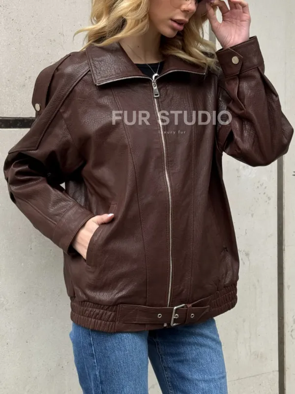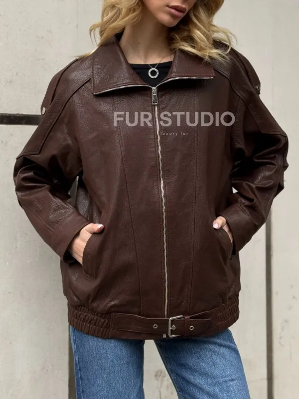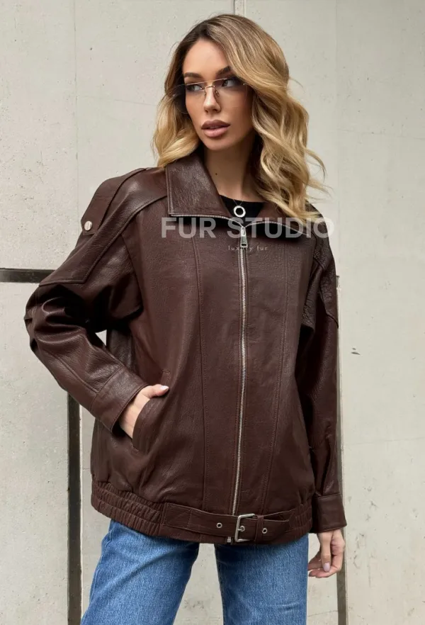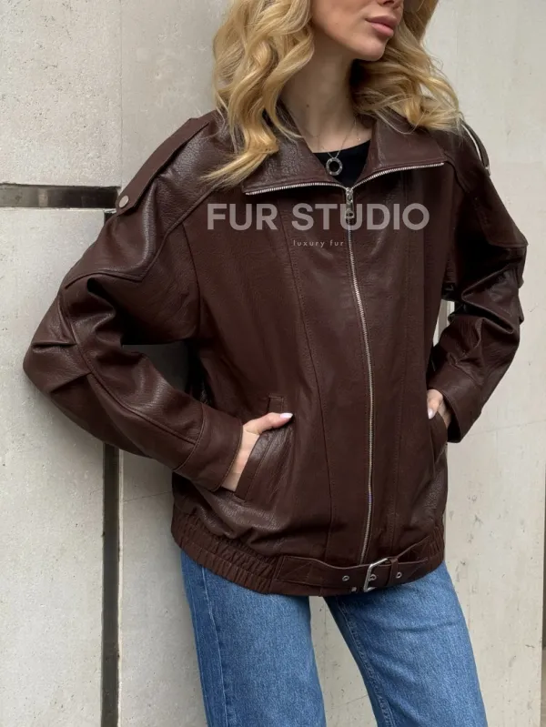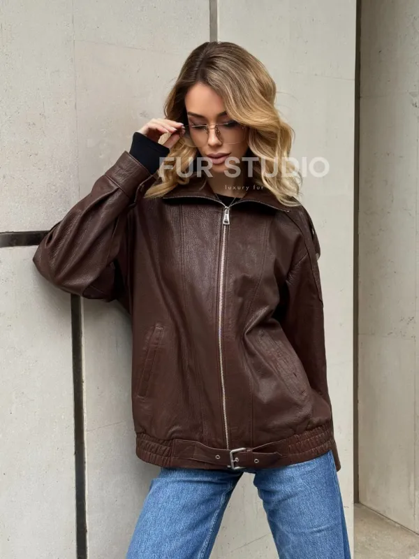 Коричневая кожаная курточка - бомбер на молнии доступна для покупки в нашем шоуруме Furs Studio в , где также предоставляется удобная доставка во все города России.
