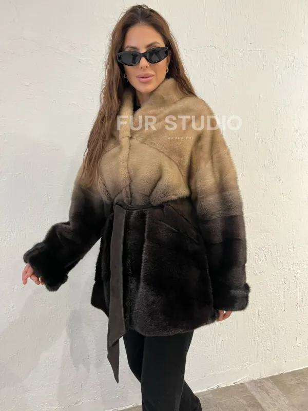 Короткая шуба из меха норки - эффект деграде 100389