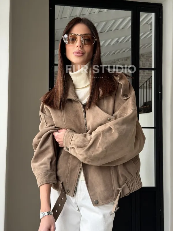 Куртка - бомбер весенняя оверсайз доступна для покупки в нашем шоуруме Furs Studio в , где также предоставляется удобная доставка во все города России.