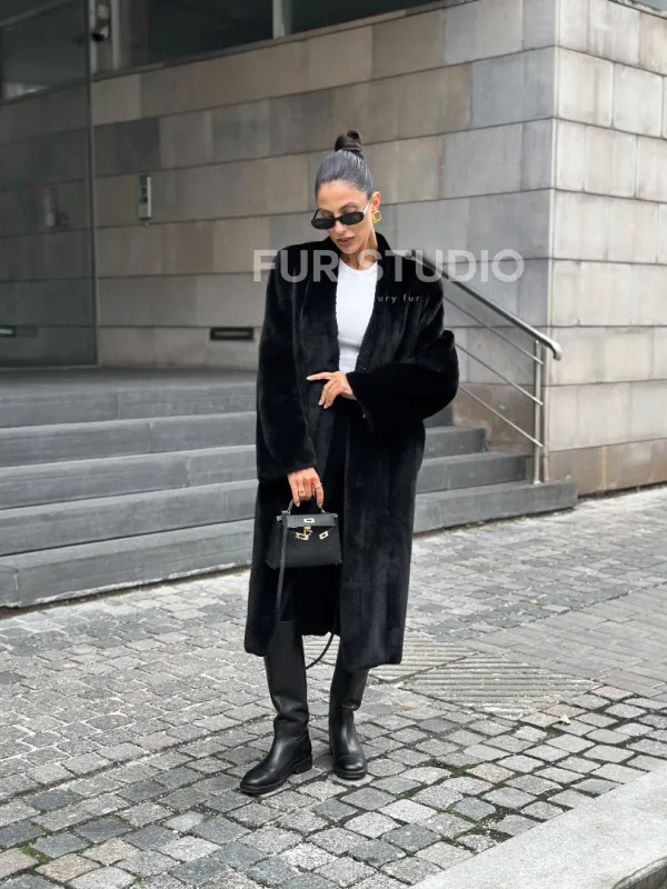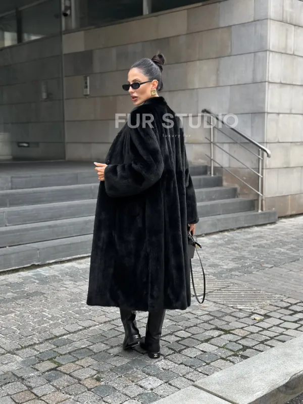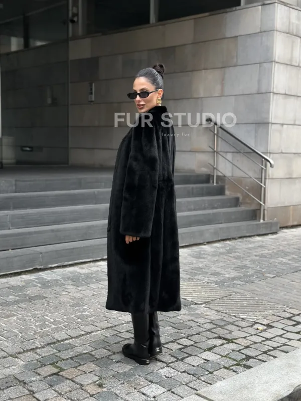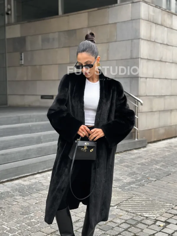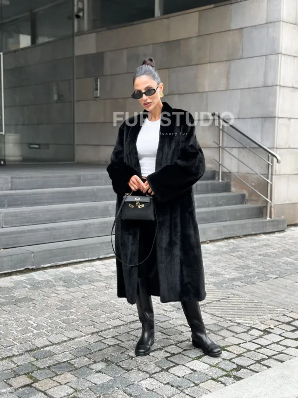 Мех данной шубы аукционная норка, цвет черный. Предлагается в размерах от 42 до 50 с 52 до 64 возможен отшив модели по индивидуальным параметрам. Длина модели 105-110 см, что выгодно подчеркивает фигуру девушек. Эта модель идеально подойдет для девушек и женщин, предпочитающих роскошные натуральные меха.