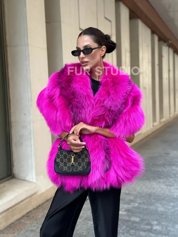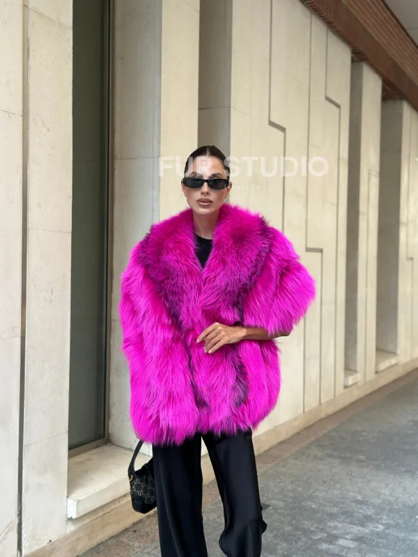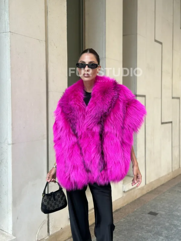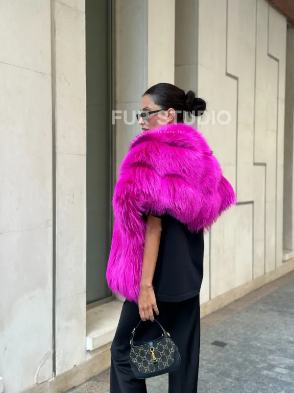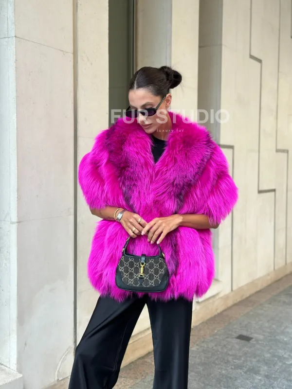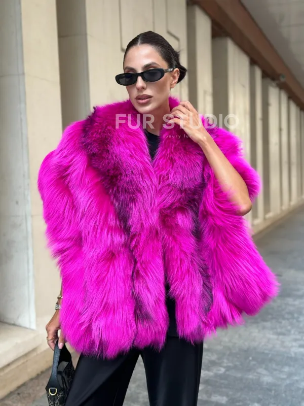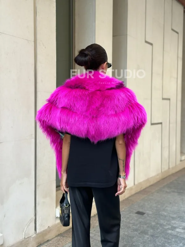 Накидка - палантин из меха чернобурки - фуксия от студии меха Fur Studio в