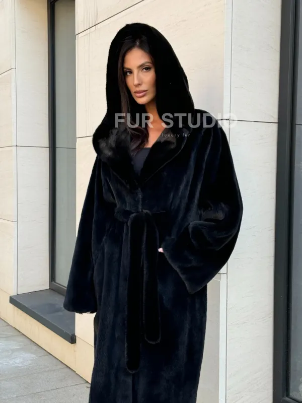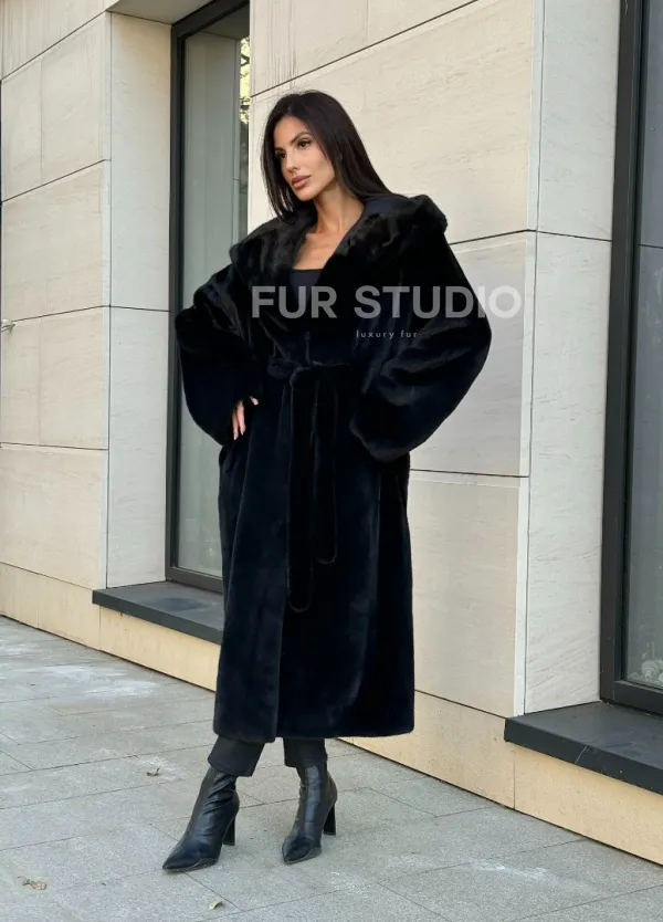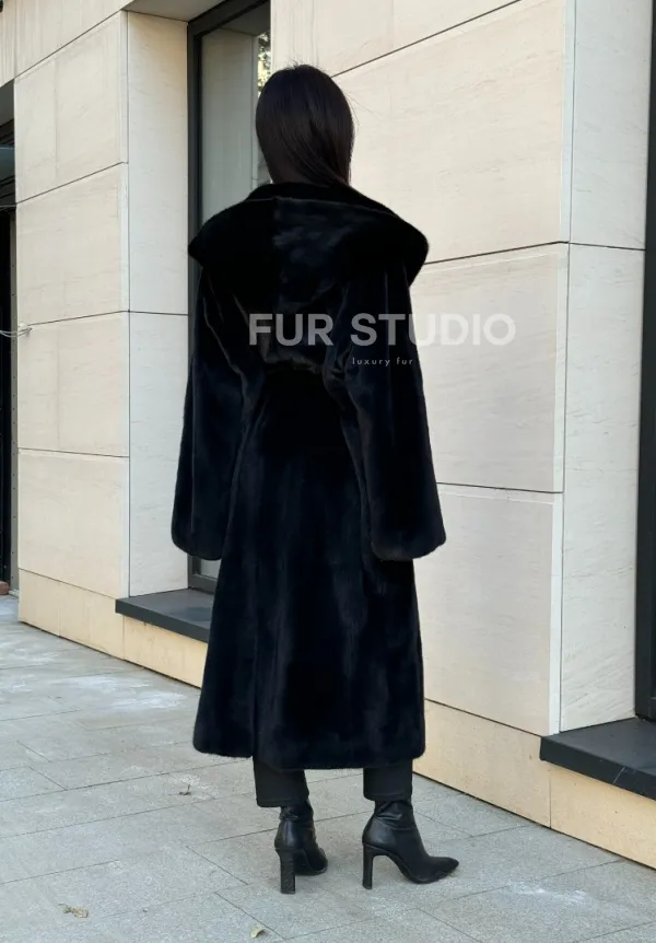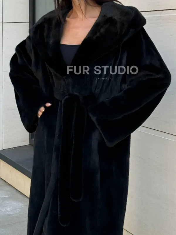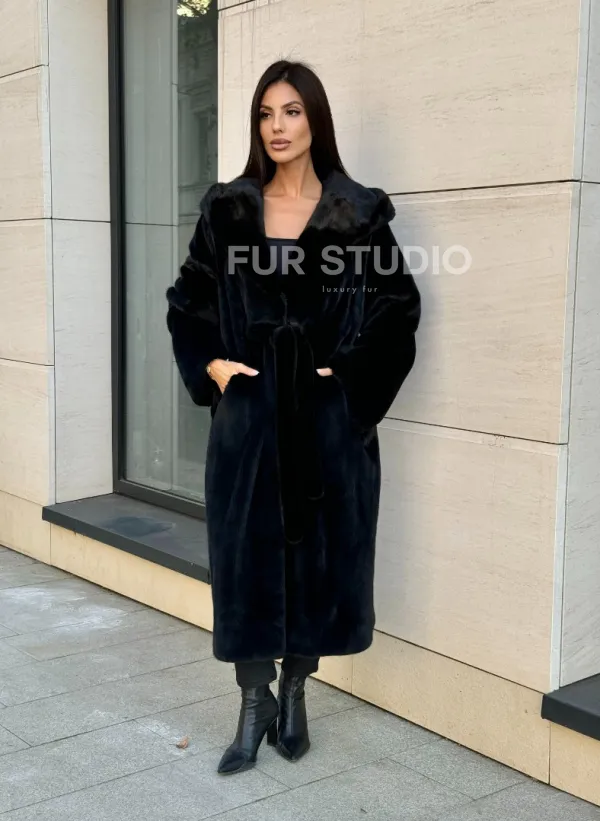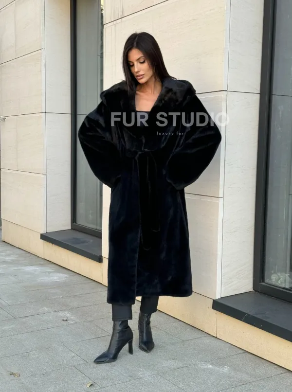 Норка кимоно BLACKGLAMA роспуск, капюшон кобра 101144