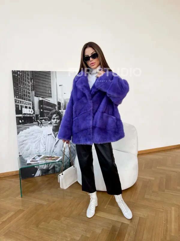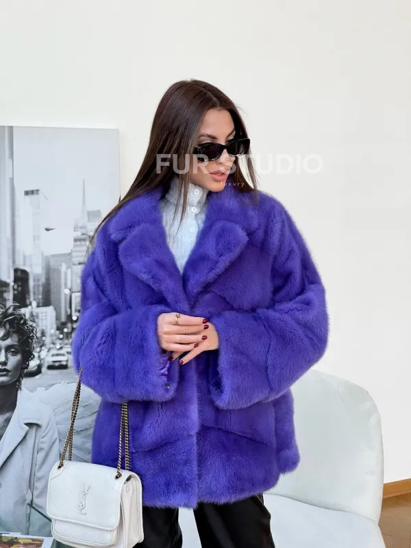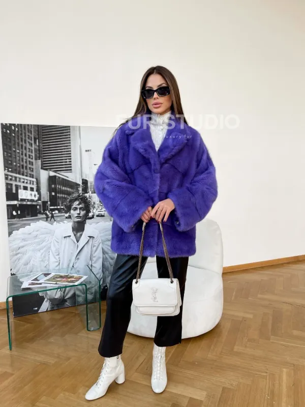 Полушубок норковый с английским воротником 100175
