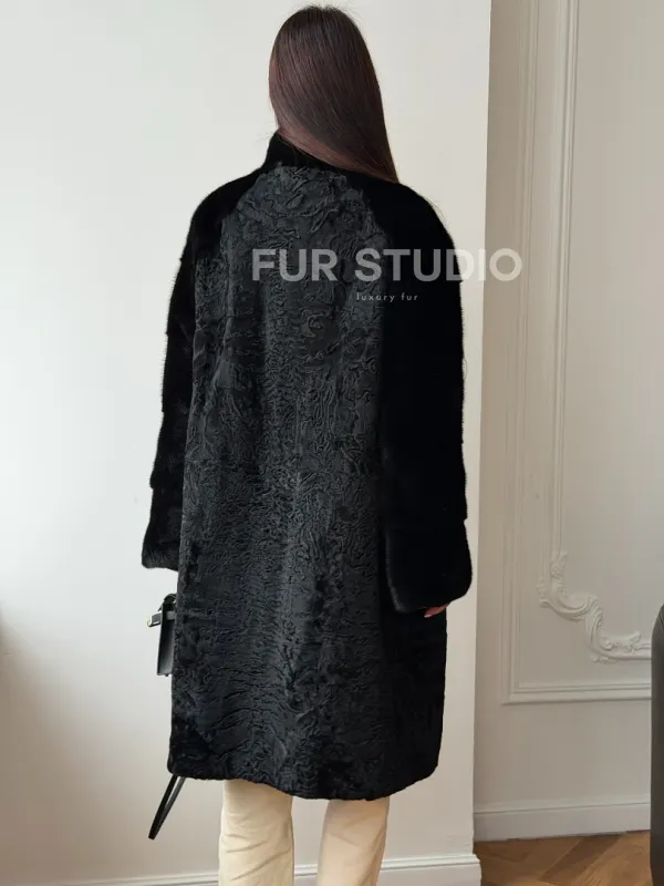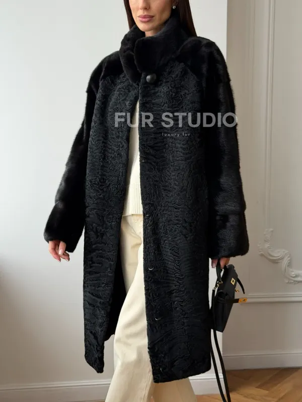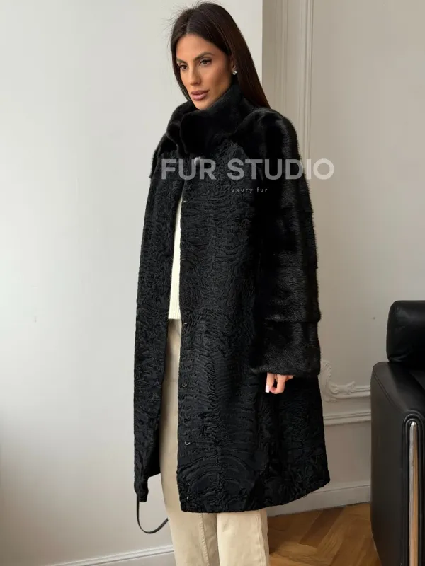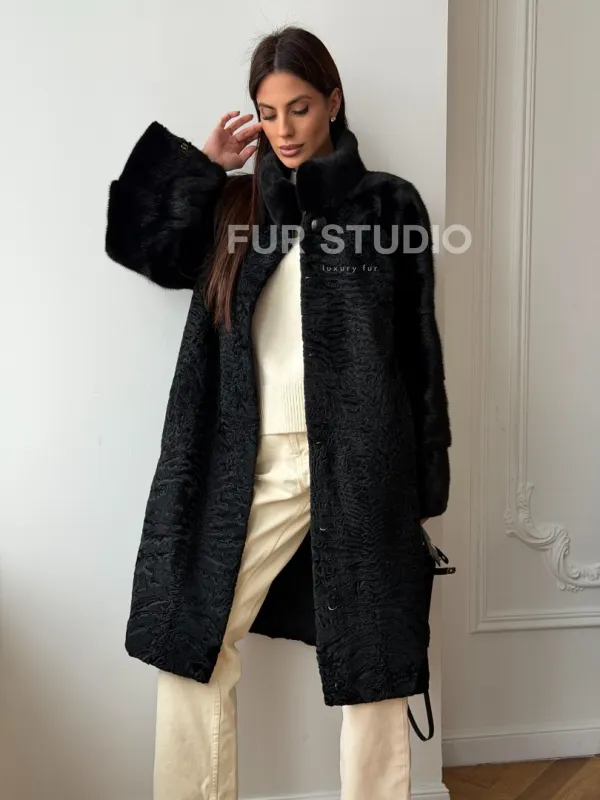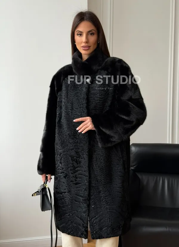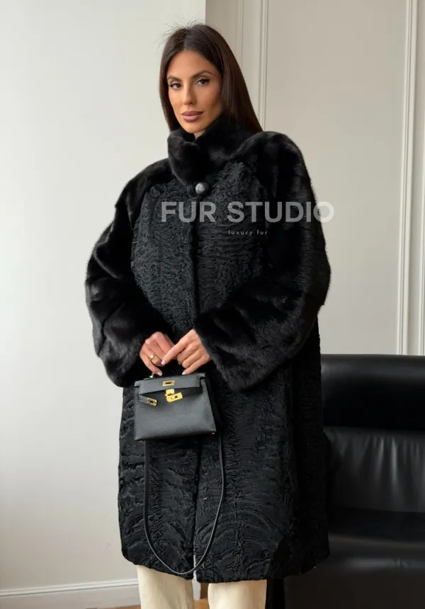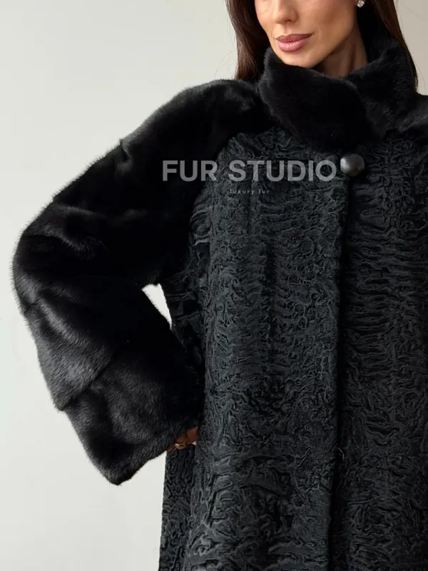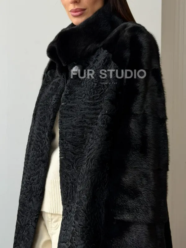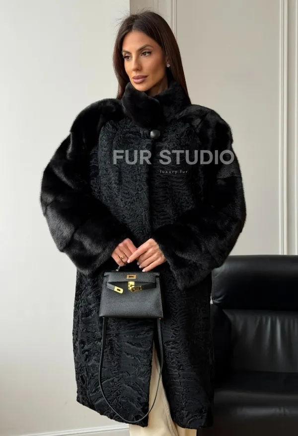 Шуба из каракуля с норкой - стойка воротник доступна для покупки в нашем шоуруме Furs Studio в . У нас так же есть доставка во все города России. Добавьте немного роскоши в свой гардероб с этой шубой, которая будет служить вам многие годы.