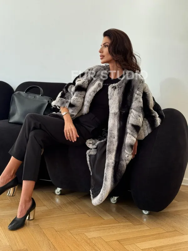 Мех данной шубы кролик рекс , цвет серый. Предлагается в размерах от 40 до 54 (oversize). Длина модели 95-100 см, что выгодно подчеркивает фигуру девушек. Эта модель идеально подойдет для девушек и женщин, предпочитающих роскошные натуральные меха.