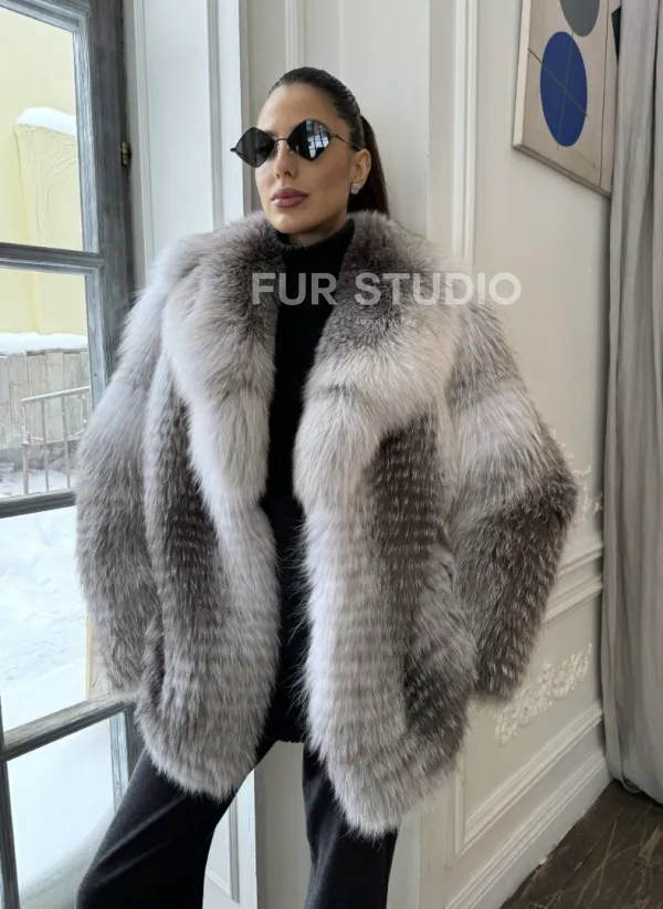 Шуба из меха арктической лисы - отличный выбор женщин, которые любят выглядеть стильно в зимнее время года. Мех смотрится шикарно и богато. Необычная расцветка подчеркнет цвет волос и глаз владелицы. В шубе будет комфортно в холодную зиму. Широкие манжеты делают акцент на тонкости кистей.
