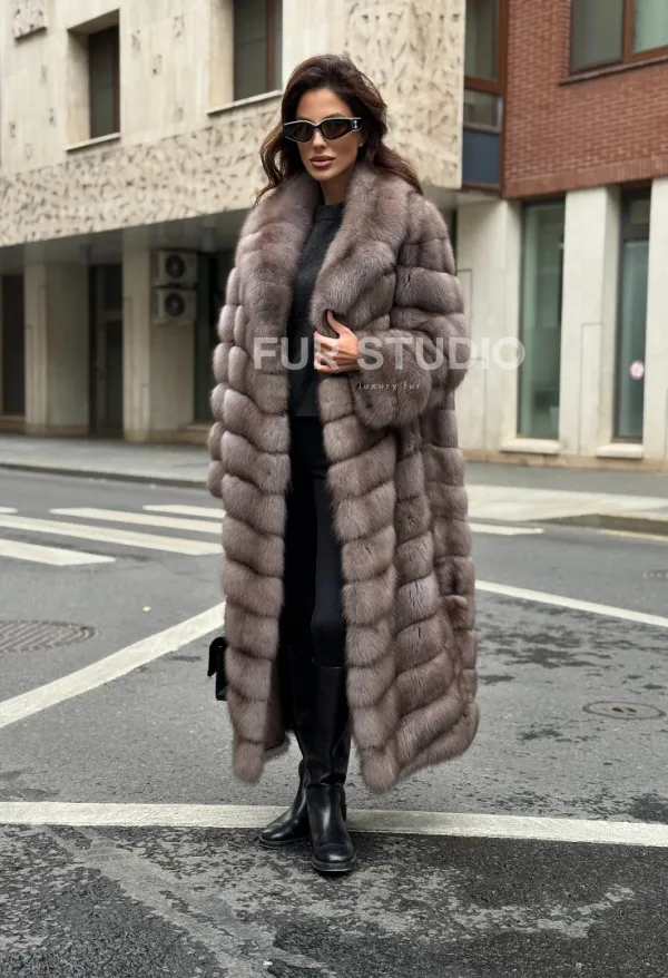 Мех данной шубы лесная куница, цвет натуральный. Предлагается в размерах от 42 до 50. Длина модели 125-130 см, что выгодно подчеркивает фигуру девушек. Эта модель идеально подойдет для девушек и женщин, предпочитающих роскошные натуральные меха.