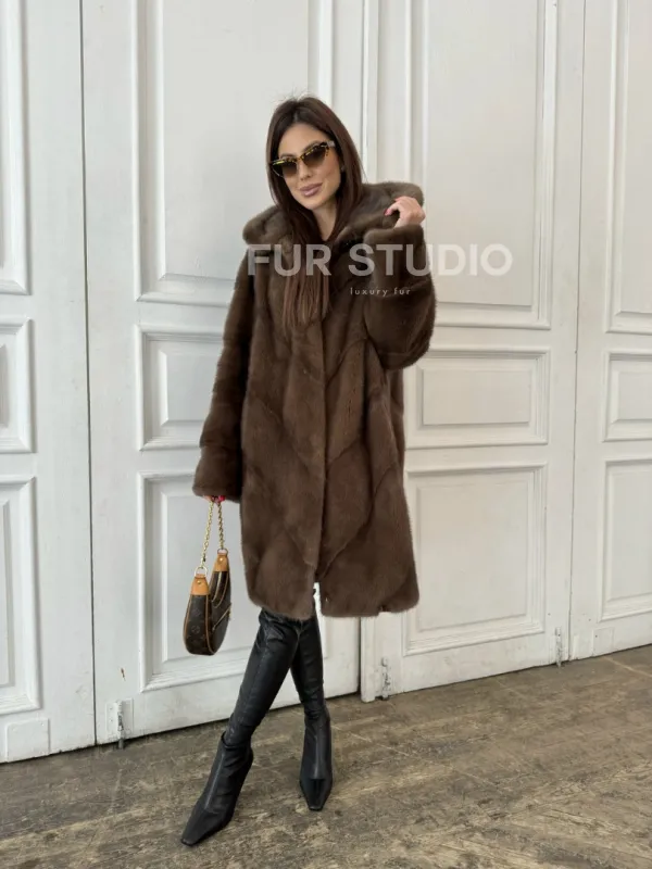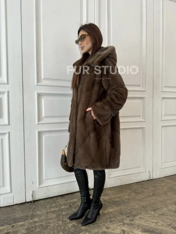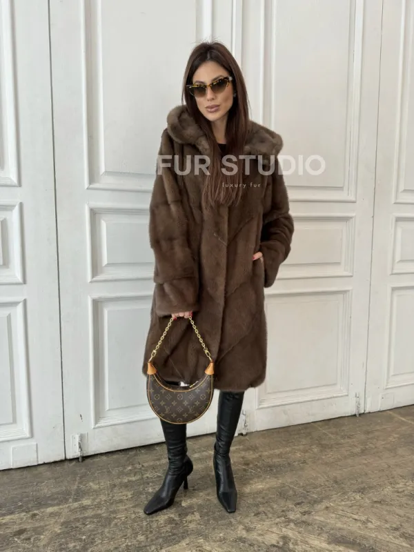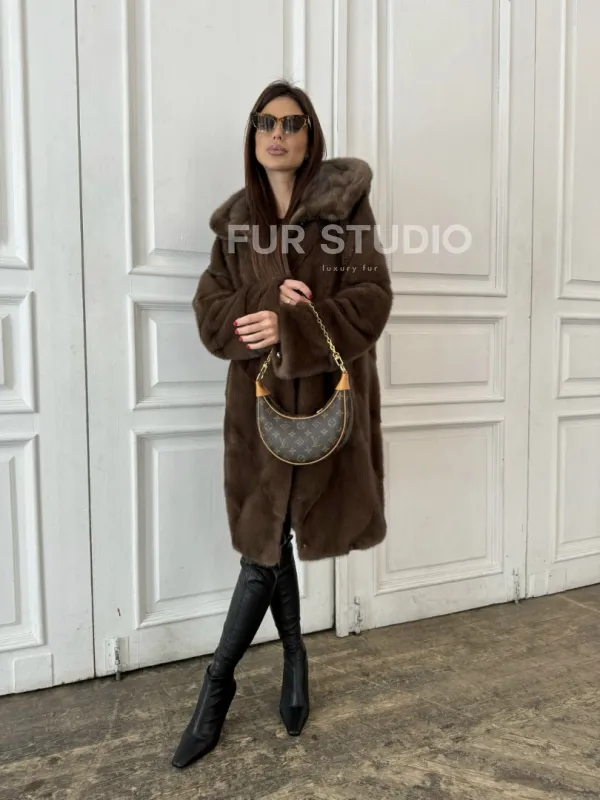Шуба из меха норки с капюшоном в цвете орех доступна для покупки в нашем шоуруме Furs Studio в . У нас так же есть доставка во все города России. Добавьте немного роскоши в свой гардероб с этой шубой, которая будет служить вам многие годы.