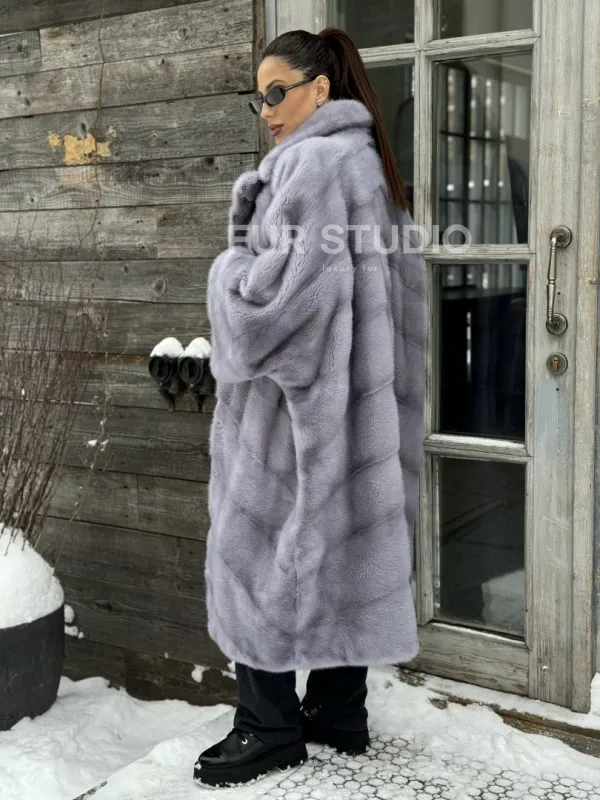 Шуба норковая в стиле Oversize - цвет серый сапфир 100860