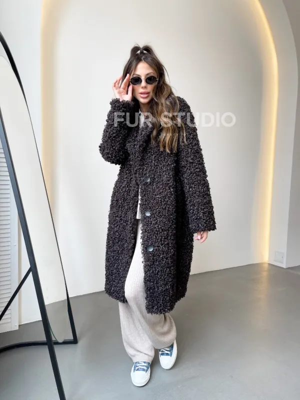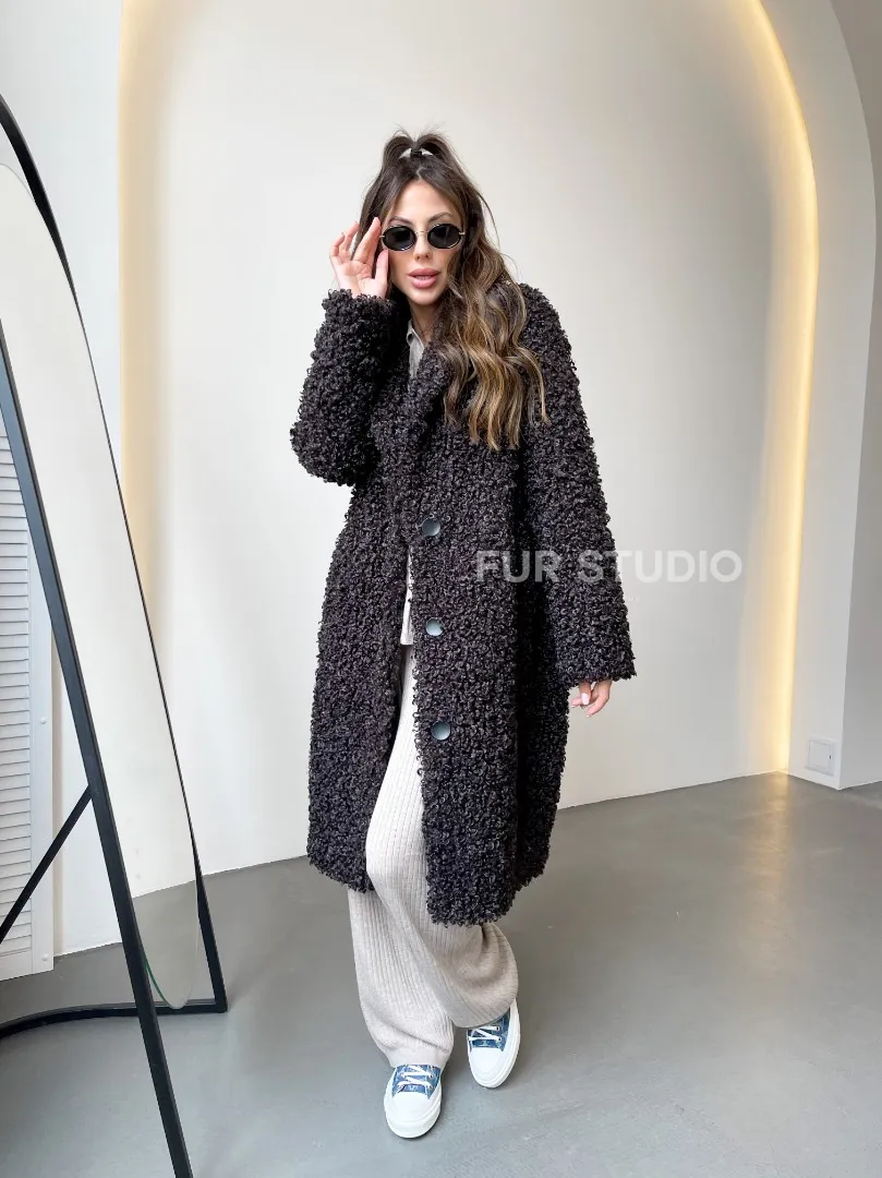 Шуба в цвете графит из экомеха 100251
