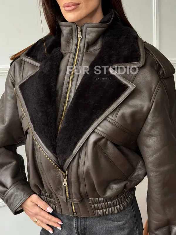 Стильная куртка - дубленка из овчины. Модель предлагается в размерах от 42 до 48. Оптимальная длина моделей 55-60 см подчеркивает линии вашей фигуры. Эта дубленка станет неотъемлемой частью гардероба для тех, кто предпочитает роскошь и утонченность натуральной кожи.